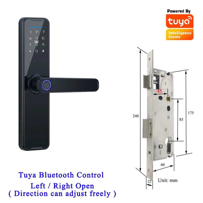 Smart Tuya APP Controle Remoto Impressão Digital Senha Elétrica Número Cartão Fechadura Da Porta Com Chave 5050 Dupla Língua Mortise