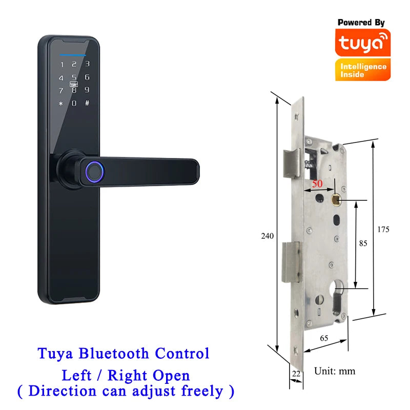 Smart Tuya APP Controle Remoto Impressão Digital Senha Elétrica Número Cartão Fechadura Da Porta Com Chave 5050 Dupla Língua Mortise